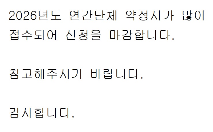 2026년도 연간단체 마감 안내